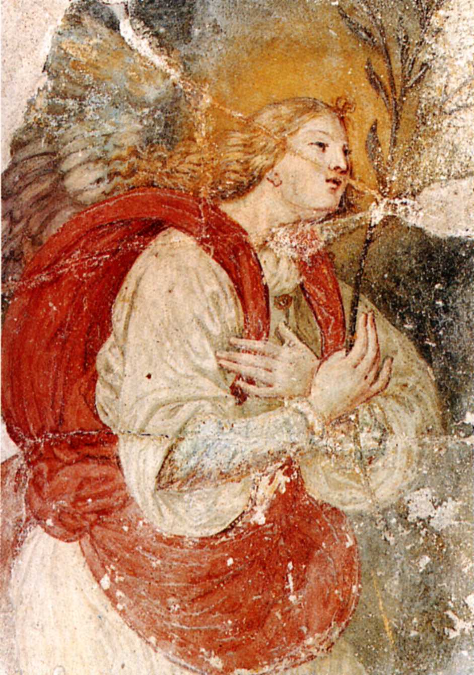 Si tratta di affreschi di particolare importanza, tra i quali spicca quello più esteso, raffigurante la Madonna con le mani giunte e gli occhi rivolti al cielo: è un'esatta riproduzione di una delle figure dolenti dipinte da Gaudenzio Ferrari all'interno della XL cappella del Sacro Monte di Varallo (verosimilmente coeva o di poco posteriore all'originale, il che permette di datare lo stesso Oratorio).